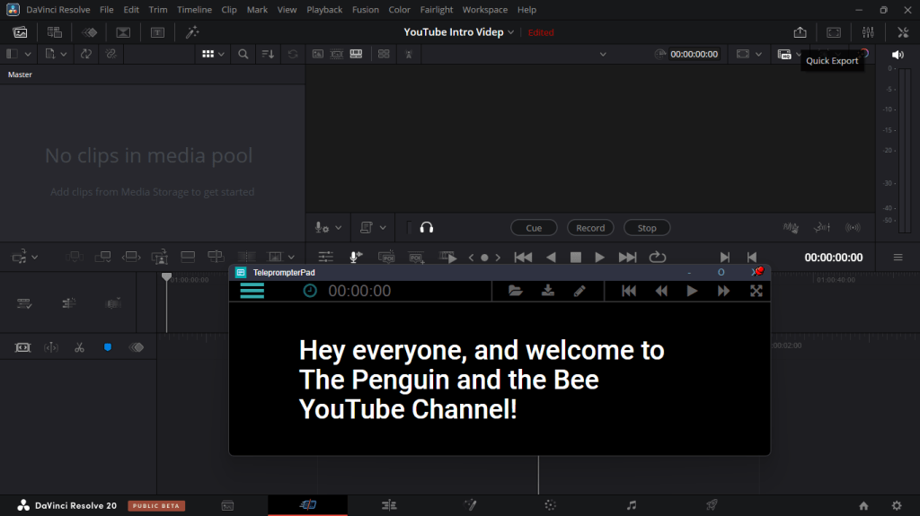 I’ve been working on the script for my YouTube channel intro for a few days, and this morning, I recorded the voice-over in just two takes. Is it perfect? No. But I’m not exactly aiming for an Oscar here. If I found the text was running away from me a little bit as I took a breath and redid a line, I simply clicked on the screen to pause the scrolling. I can edit out the line I fluffed very easily in DaVinci.