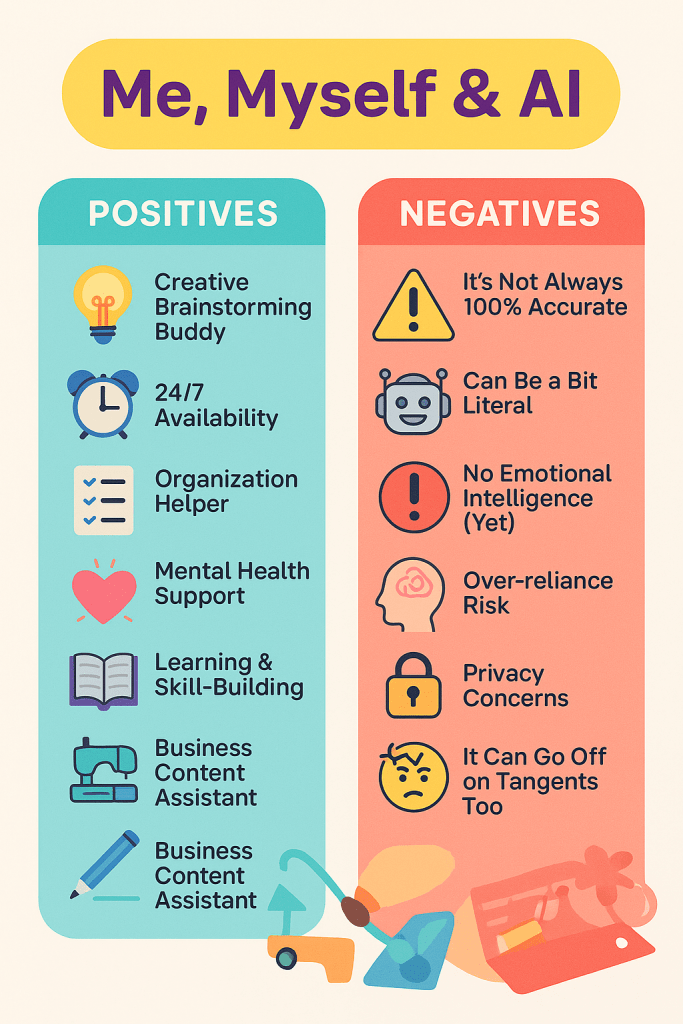 For me, it’s like having a super-organised, slightly robotic friend who’s always there to help (and never judges me for asking silly questions at 2am). It doesn’t replace real human connection or creativity, but it does help spark ideas, polish my writing, and bring a bit more ease and fun into my daily routine.